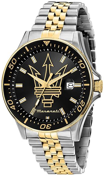 Vi börjar med att lyfta fram en av de mest klassiska färgkombinationerna en klocka kan ha. En svart urtavlan mot en silverlänk andas elegans och lägg därpå till Maserati-loggan. Klockan håller stilen år efter år och har alla funktioner du behöver, som självlysande visare och 24h-visning